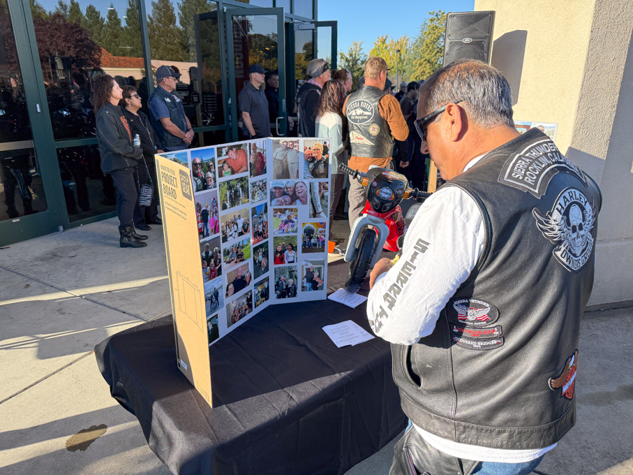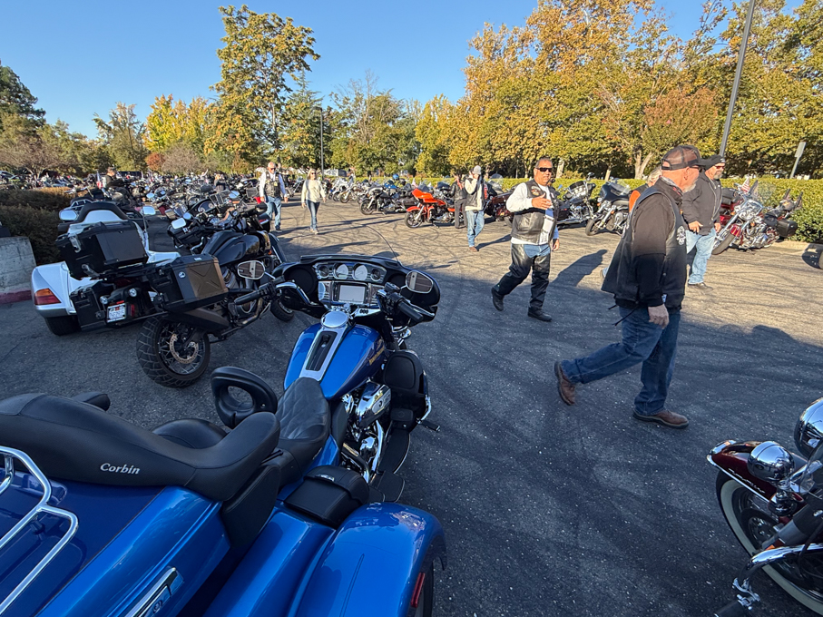 The tribute ride began at Folsom Harley-Davidson shortly after 9 a.m., where riders gathered around Van Hooser’s Harley, sharing memories and embracing his family. The crowd then formed a motorcycle procession stretching for miles, heading south on Folsom-Auburn Road, across the iconic Folsom Lake Crossing, then west through Greenback Lane before arriving at Mt. Vernon Memorial Park in Fair Oaks, where Van Hooser was laid to rest with full military honors.