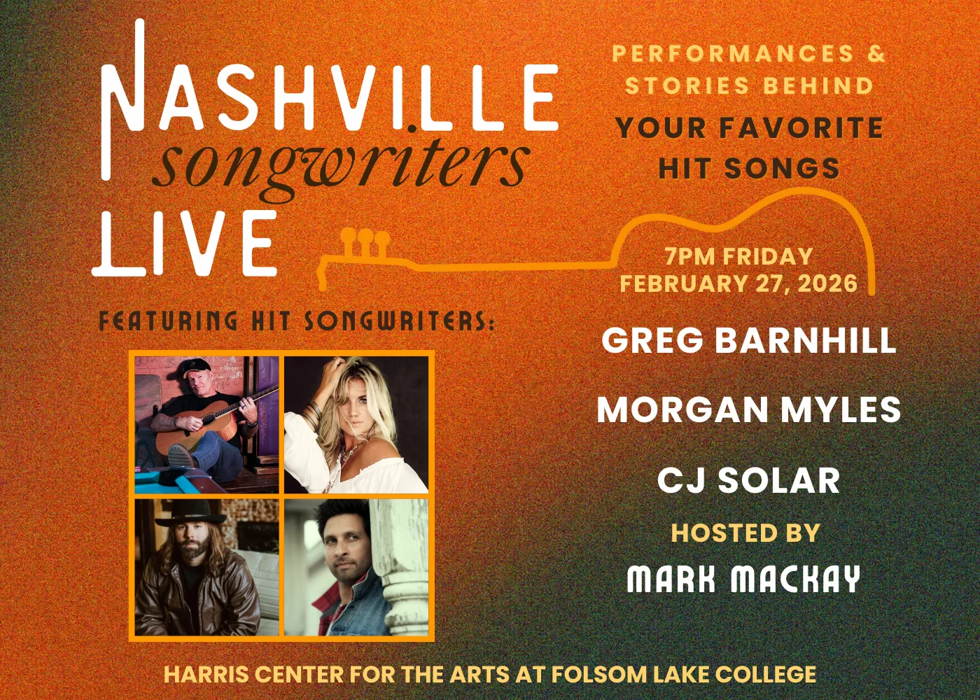 Join top songwriters Greg Barnhill, Morgan Myles (top 3 finisher on NBC’s The Voice!), CJ Solar, and Mark Mackay for an intimate show with a full band, acoustic moments, and unforgettable storytelling. These talented performers will unravel the tales that inspired their chart-topping hits for artists like Martina McBride, Amy Grant, and Morgan Wallen. Don’t miss this unique and personal experience! Plus, your attendance supports nonprofit life-changing programs for youth. Book your tickets now for an unforgettable night of music, storytelling, and making a positive impact.