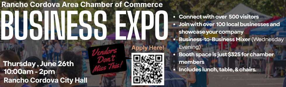 Jun 26 10:00 am - 2:00 pm Rancho Cordova Area Chamber Business Expo Rancho Cordova City Hall 2729 Prospect Park Drive, Rancho Cordova City Hall Event Details Get Directions