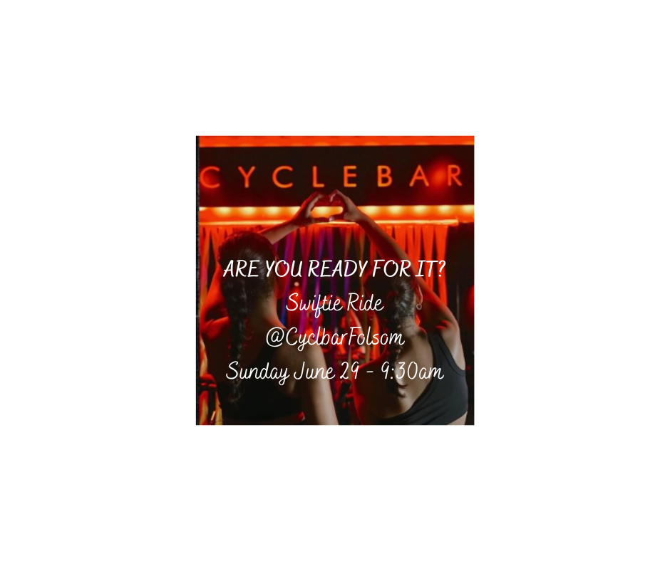 Jun 29 9:30 am - 10:30 am Swiftie Sunday Ride @CyclebarFolsom CYCLEBAR FOLSOM 360 Palladio Pkwy,, Folsom Event Details Get Directions