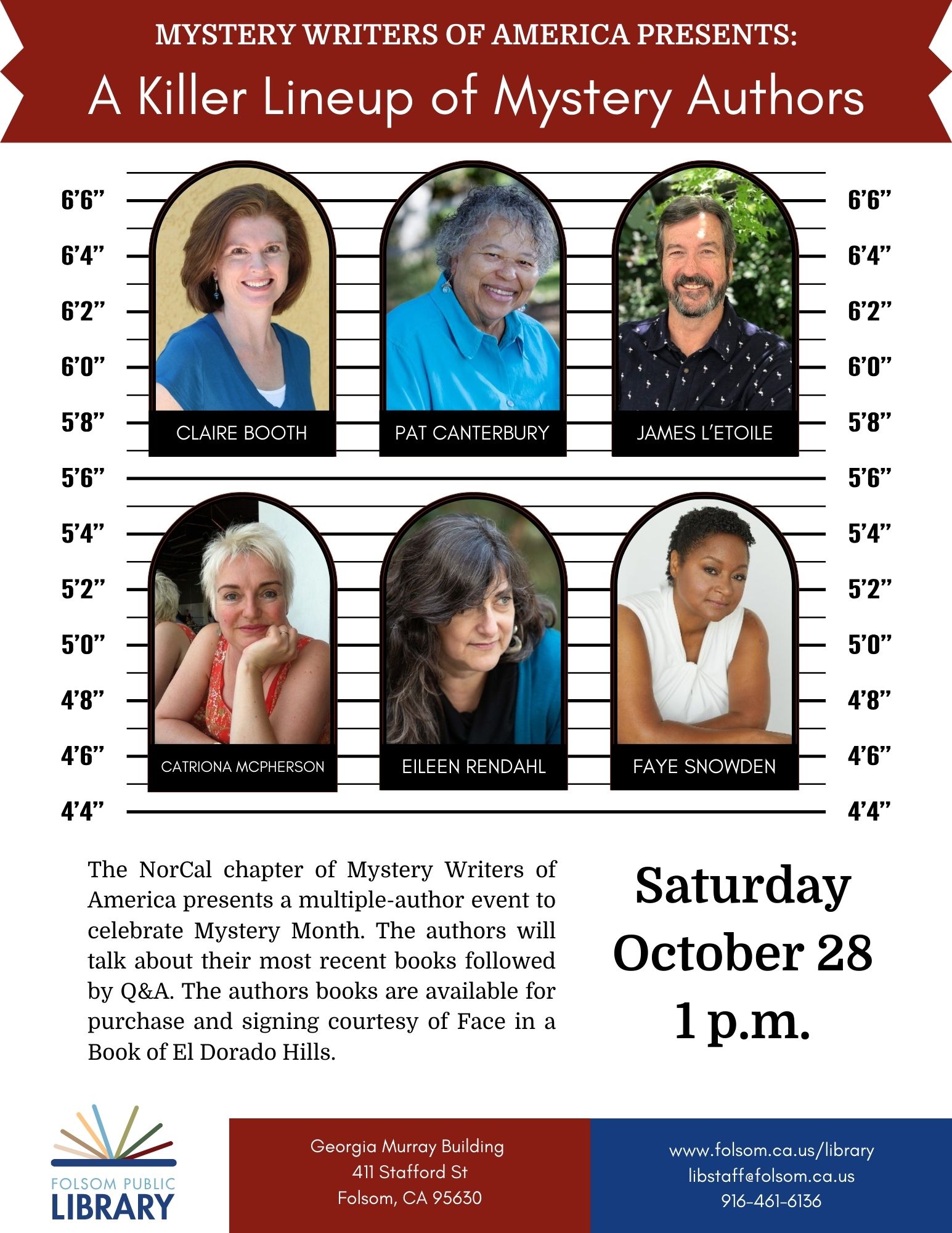 Mystery Writers of America Presents: A Killer Lineup of Mystery Authors Oct 28 1:00 pm - 2:00 pm Mystery Writers of America Presents: A Killer Lineup of Mystery Authors Free