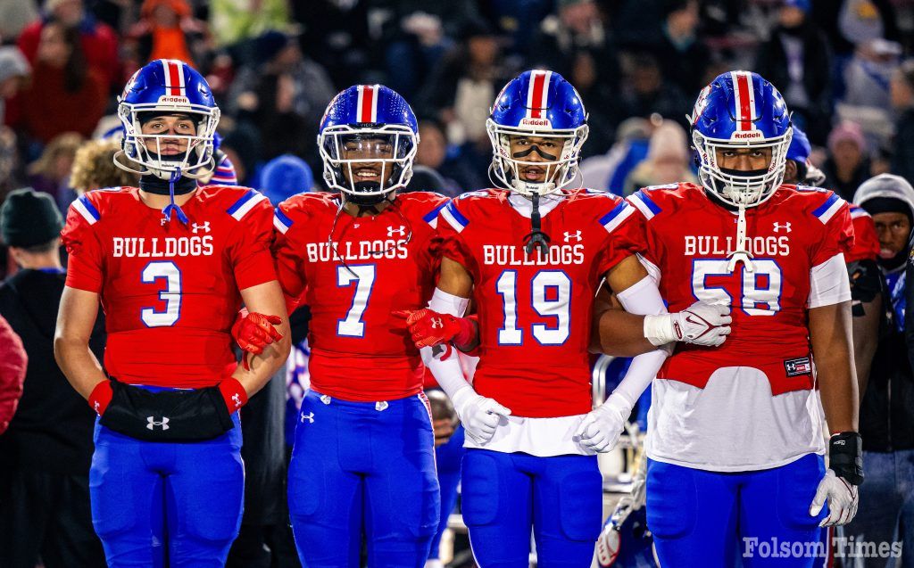 FOLSOM — Fans packed Prairie City Stadium Friday night bracing for a heavyweight playoff clash, and what they witnessed was possibly one of the most dramatic, emotional, gut-check comebacks in recent Folsom Bulldogs postseason history. Trailing by 18 points late in the first half, missing their star quarterback after an early departure following an apparent shoulder injury, and staring down a Riordan offense that seemed unstoppable, the Bulldogs rose from the brink to defeat Archbishop Riordan 42–38 and keep their state championship title hopes very much alive.