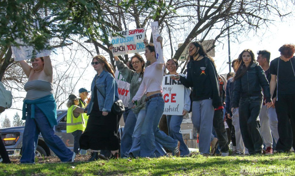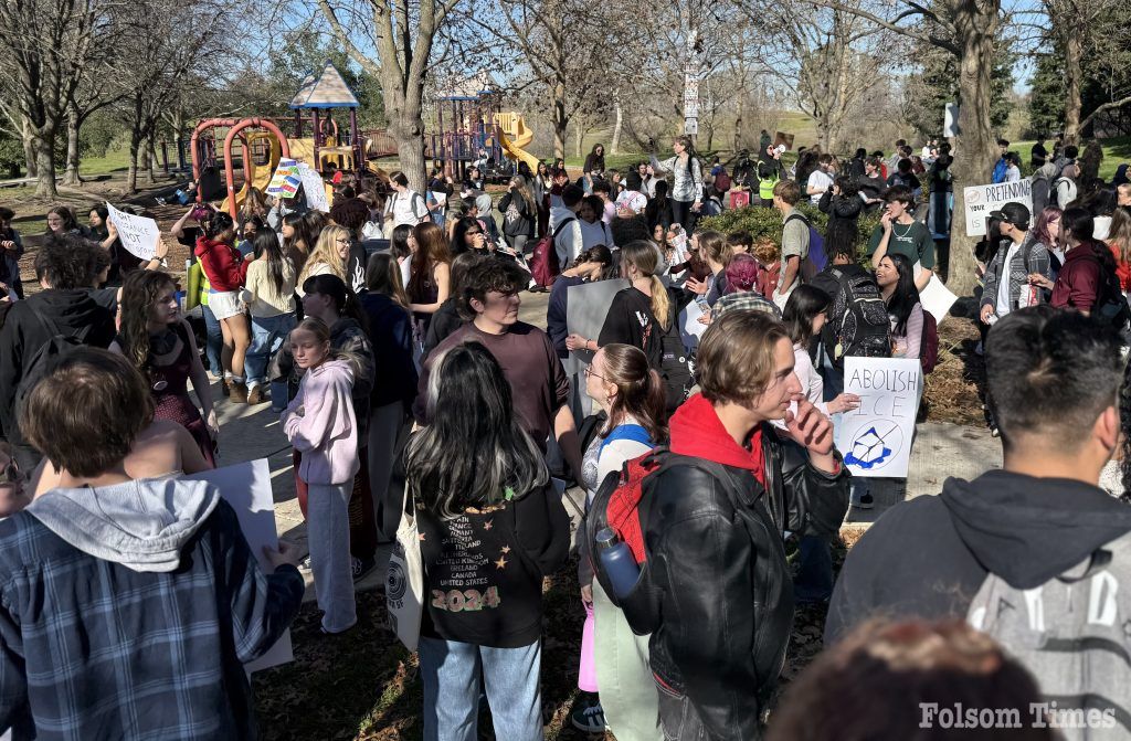 The demonstration, organized under the banner of the “Folsom School Walkout, Protest & Student Art Advocacy Rally,” began just before 10 a.m., when students exited their respective campuses and made their way toward the park.