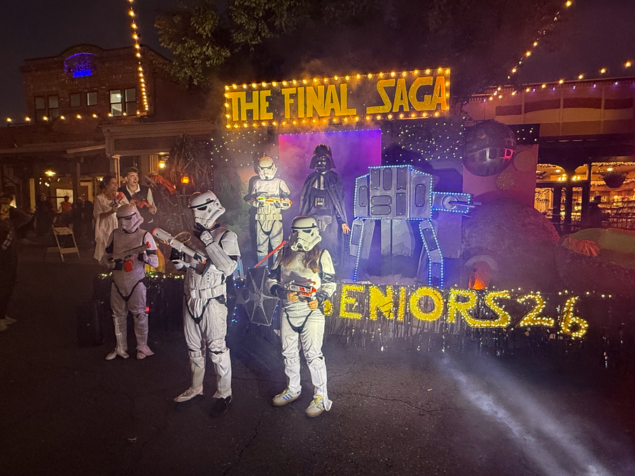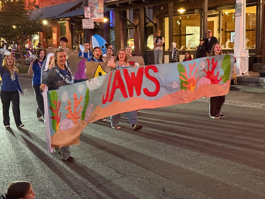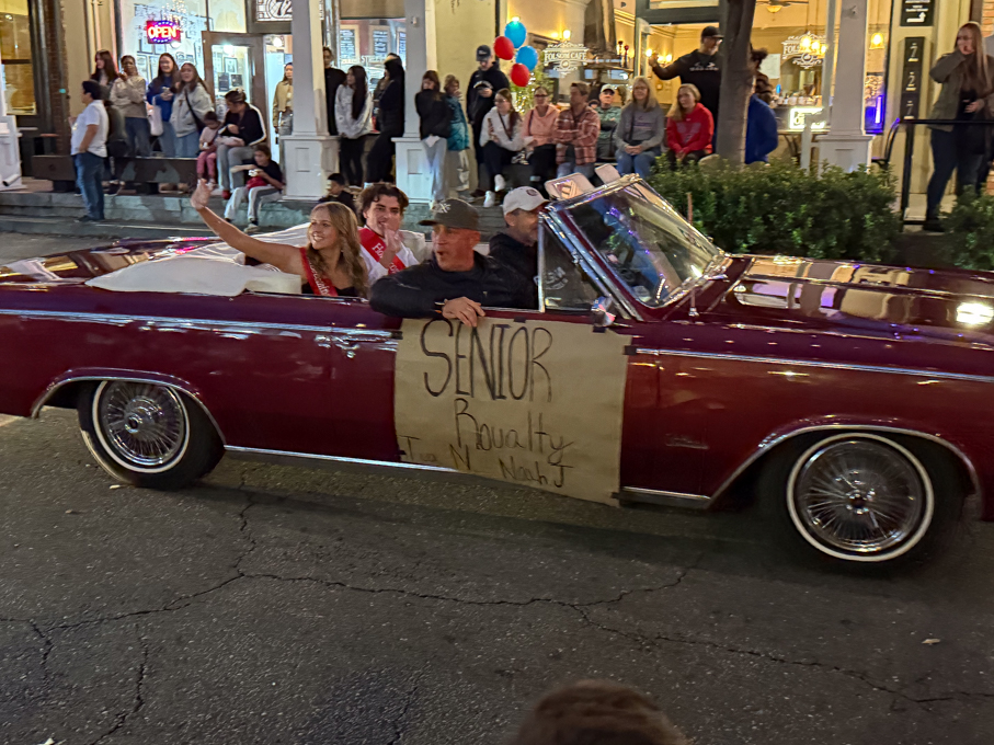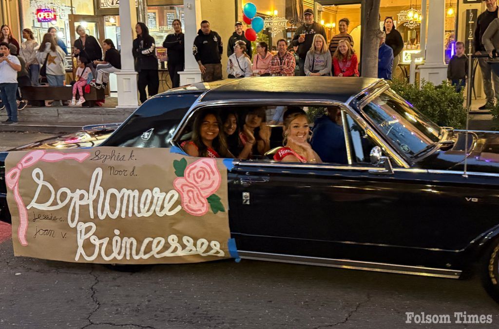 The parade began just after 6:30 p.m., filling Sutter Street with the sights and sounds of school spirit. Hundreds of families and alumni lined the sidewalks as the Folsom High marching band led a procession of cheerleaders, athletic teams, school clubs, and class floats representing each grade level. The annual event once again served as a reminder of the deep connection between Folsom High and the community that supports it.