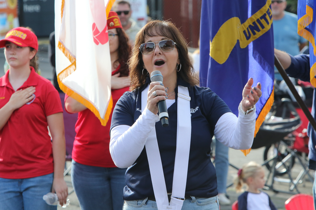 The program continued with the ceremonial raising of the American flag, followed by the presentation of flags for each branch of the U.S. military. The moment was briefly interrupted when a young participant fainted, prompting a quick response from paramedics on site. The individual was treated at the scene and later reported to be doing fine, allowing the ceremony to resume without further incident.