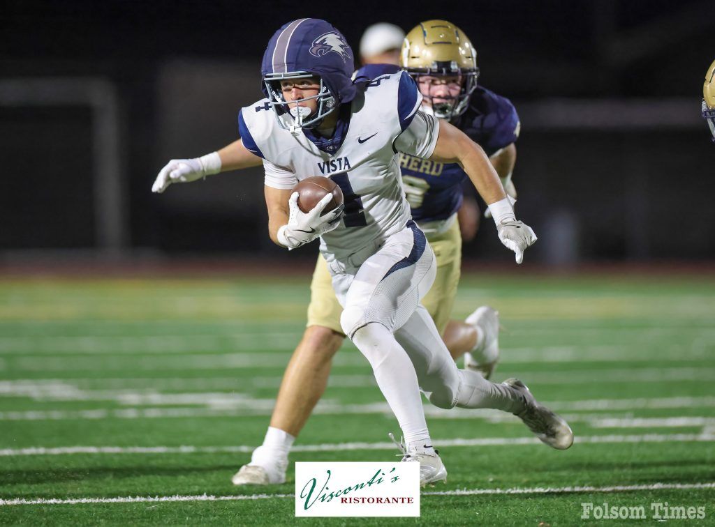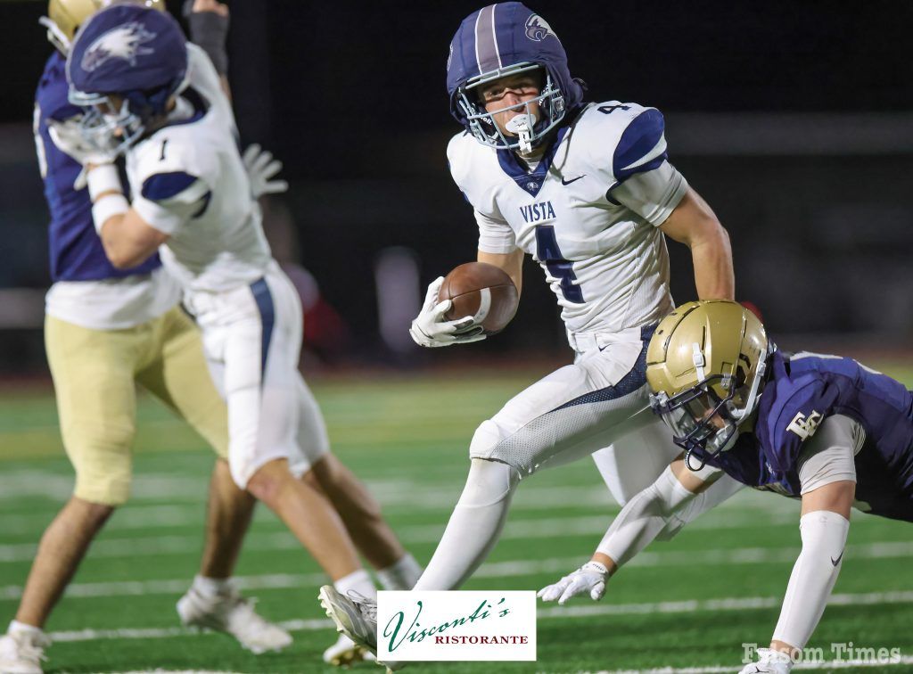 With the game tied late, More hit senior receiver Kyle Cromwell on a 16-yard touchdown pass to even the score at 28–28, then connected with Jack Cromwell for a 27-yard strike to put the Eagles on top. Vista’s defense, led by clutch takeaways from Kingston Foster-Davis and Gavin Brainerd, set up both scoring drives and kept Elk Grove off balance throughout the second half.